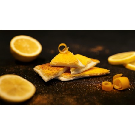 Weisse Schokolade, Zitronensaft, Butter, Glukose, Sorbinsäure, gelbe Lebensmittelfarbe
