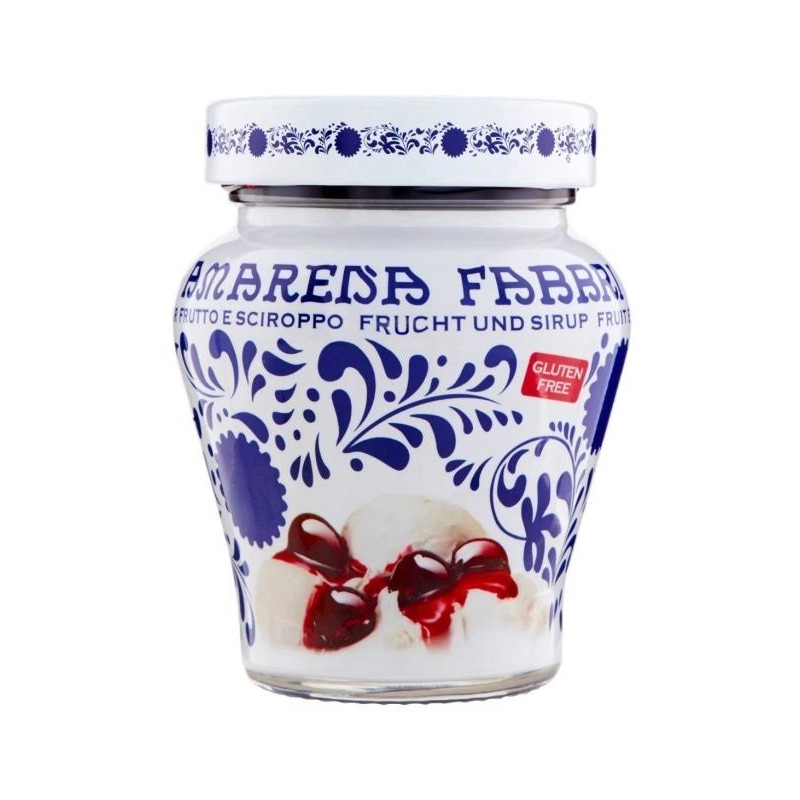 Das Symbol und der Geschmack vom Fabbri: eine Weltmarke. Fabbri Amarena wird halbkandiert und in Sirup konserviert, nach demselben über Generationen überlieferten Geheimrezept und mit derselben Leidenschaft wie in der über hundertjährigen Geschichte. Perfekt als einzigartiges Dessert oder zum Garnieren von Desserts, Eiscreme, Joghurt und allem anderen, was Sie bevorzugen. Das handliche 230g Glas, mit den typischen Fabbri-Blumenmotiven verziert, ist ein zeitloser Klassiker.